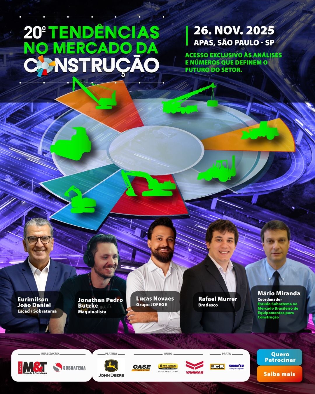 A programação será dividida em quatro blocos, com Miranda trazendo aspectos e dados distintos do Estudo de Mercado para iniciar o debate entre os especialistas: Eurimilson Daniel, vice-presidente da Sobratema, Jonathan Pedro Butzke, head de Operações do Maquinalista, Lucas Novaes, diretor de Obras da Jofege Pavimentação e Construção, e Rafael Murrer, economista sênior do Banco Bradesco.
